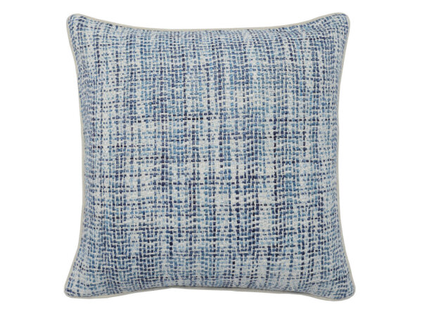 Inspired by the jewel tones of coastal waters, the Baxter pillow features rich blue hues depicted by a mesmerizing handwoven