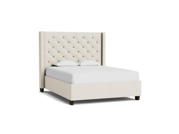Tufted upholstered bed customizable in designer fabrics, available as a complete bed or headboard-only. The complete bedframe offers optional end-of-bed storage and is available in sizes Twin–Cal King.