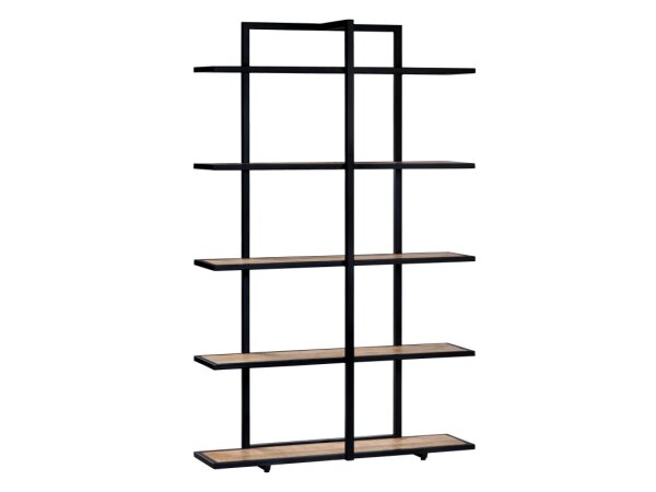 Wire-brushed Quartered Oak etagere bookcase with three fixed shelves and a warm pewter metal frame. Finished on all sides to float or use from either side.