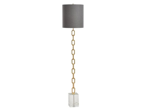 Bixby Floor Lamp | Brass Finished Metal Body With Crystal Base | Hardback Shade