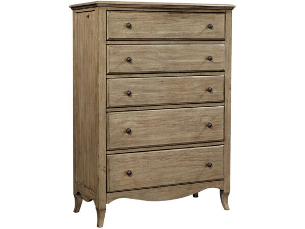 Provence consists of a light, weathered finish on Acacia veneer blending easily with most existing home decor. The gentle curves