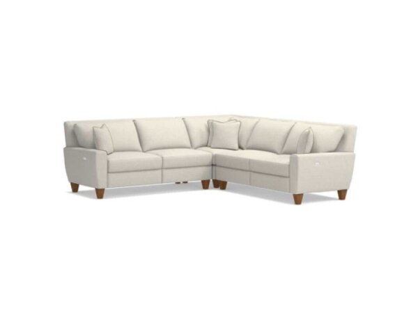 Spacious U-shaped sectional sofa with boxed seat cushions and knife-edge back cushions that are flippable and fluffable for lasting comfort. Sleek slope arms, modern wood block legs, and performance fabric options.