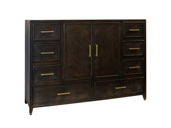 Burnt Umber Solid Wood 8 Drawer 2 Door Wardrobe Console