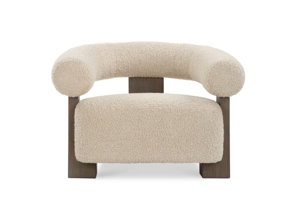Oversized chair-and-a-half with deep seating, removable seat and back cushions, and full-front track arms. Low-profile design on recessed wood block legs creates modern lounge seating.