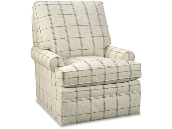 Barrel-back accent chair with Art Deco-inspired curves, a tight back and sloped arms for supportive lounging. Fabric upholstery; back cushion is not removable.