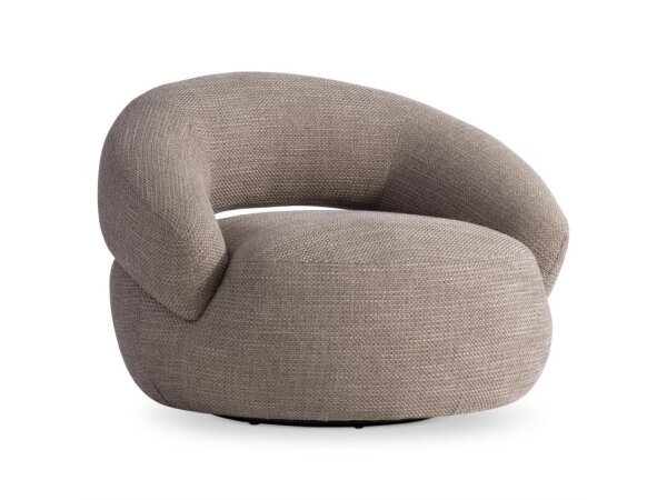 Soft curves, sloped arms and plush cushions give this subtly sophisticated swivel chair its relaxed modern look.