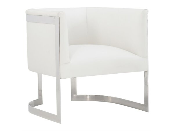 An artistic and eclectic piece, this modern take on the traditional barrel chair features a striking stainless steel frame.