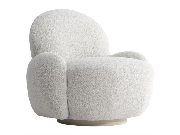 Soft curves and sloped arms give this swivel chair a relaxed modern look.