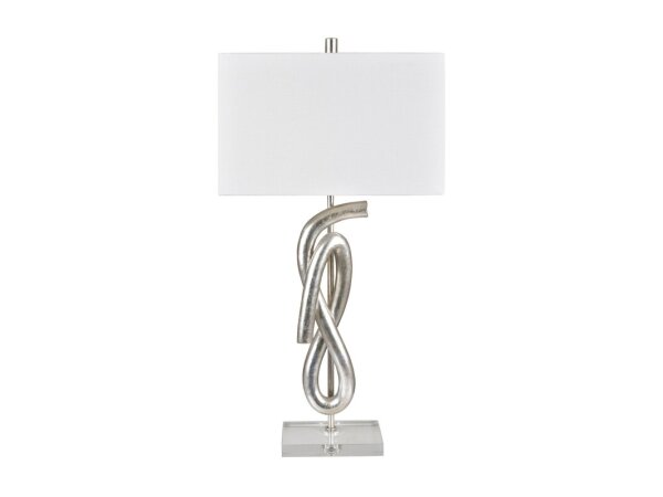 The Crestview Collection Strider Table Lamp captivates with its molded figure 8 shape, finished in a sophisticated silver gilt. A