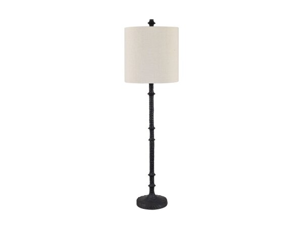 The Crestview Collection Asher Buffet Lamp, crafted from resin to mimic the texture and color of hand-forged iron, brings a