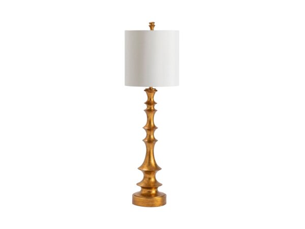 The Crestview Collection Langston Table Lamp has a gold-toned, resin, base that leads your eye up the base of the