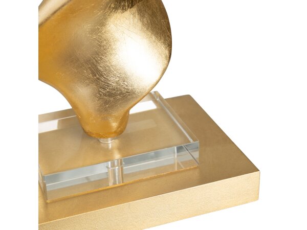 The Crestview Collection Carrington Table Lamp features an elegant style, gold-toned, elongated drop, resin, base that holds a round cut