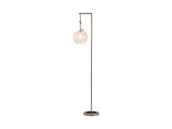 The Crestview Collection Brooks Floor Lamp features a fashionable design with a blown glass globe suspended from a natural hemp