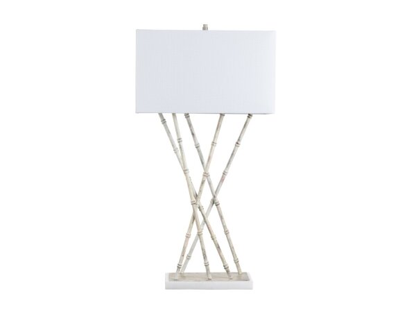 Embrace organic elegance with the Crestview Collection Parrish Table Lamp, hand-finished cast metal bamboo shoots form an asymmetrical pattern atop