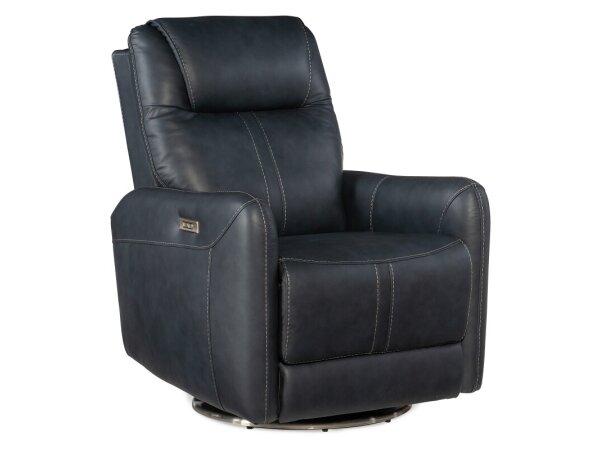 43 1/2" (110.5 cm) MS Living Room Montel Lay Flat Power Recliner with Power Headrest & Lumbar enriched by Leather design elements, making it a distinctive interior accent.