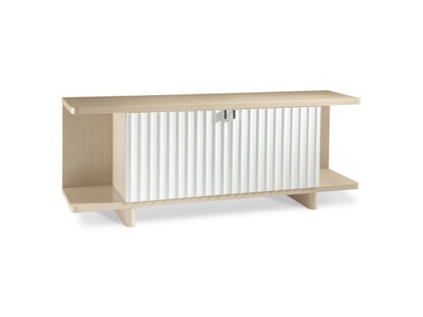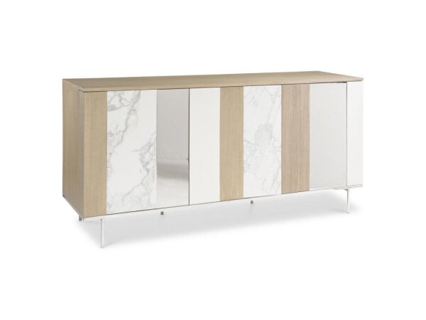 72 in. buffet crafted of poplar and hardwood solids with maple veneers, offering adjustable shelves, fixed shelves, and drawers with felt-lined silverware storage. Speckled Gray, hand-distressed finish with tear-drop hardware.