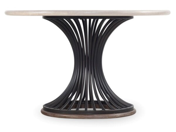 This gathering trestle table base is crafted from Rubberwood solids and Mindy veneers with a Textured White finish. It features sturdy square block legs and an over-scaled center trestle for a blend of rustic and contemporary style.