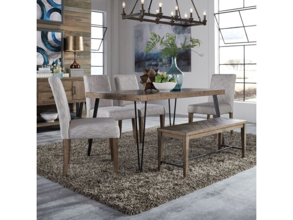 The Allyson Park rectangular leg table, crafted from rubberwood and pine solids with pine and oak veneers, features a wire brushed white finish with a planked charcoal top. It includes a fixed top, two felt-lined storage drawers with full extension glides