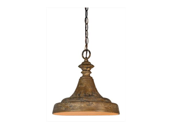 Hanson 1-Lt Pendant – brings vintage-inspired charm with its distressed antique gold metal finish and sculptural silhouette. The turned-style top