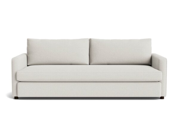 Modern fabric track-arm sofa with a deep, loose box seat for laid-back comfort. Clean lines suit contemporary living rooms; back cushions are removable.