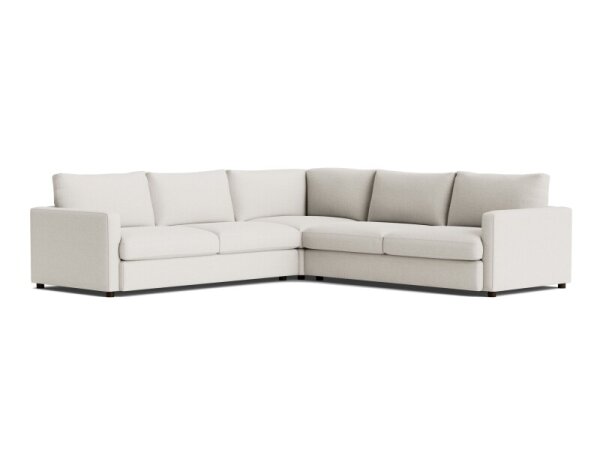 U-shaped chaise sectional with modern track arms and deep bench seats. Fabric upholstery with removable back cushions; 154 in. W x 67 in. D x 35 in. H.