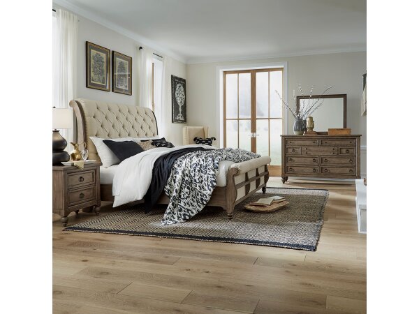 King Uph Sleigh Footboard,King Uph Sleigh Headboard,Cali King Sleigh Bed Rails,9 Drawer Dresser,Landscape Mirror,5 Drawer Chest,2 Drawer Night Stand w/ Charging Station