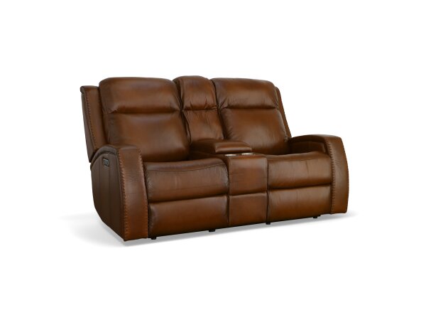 Mustang Rust Leather Power Loveseat with Console with Power Headrest