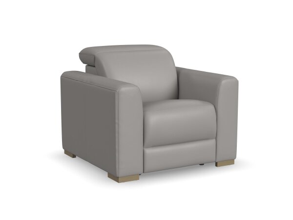 The luxurious look of upscale stationary furniture combines with functional adjustability with the Aurora power recliner with power headrest. Transform