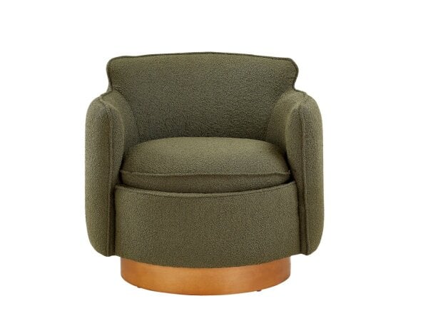 Luke Swivel Chair – The Luke Swivel Chair is upholstered in luxurious green boucle fabric, offering a rich texture and