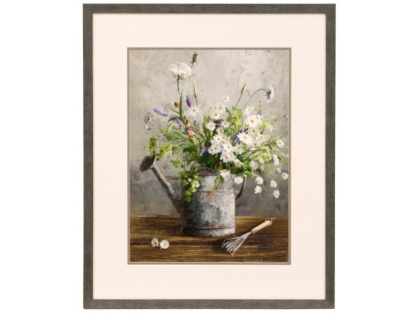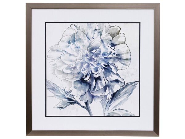 Peony Artist Print Faux Wood Frame Under Glass Attached Hanging Hardware