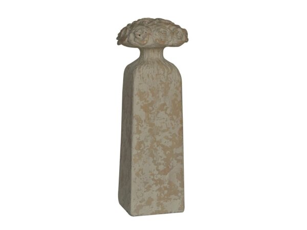 Queen poster bed with short posts, featuring a vertically channeled upholstered headboard in a soft neutral and a rustic White Oak/Pine Knotty Oak veneer frame. Includes headboard, footboard and rails; smoky Arabica finish.