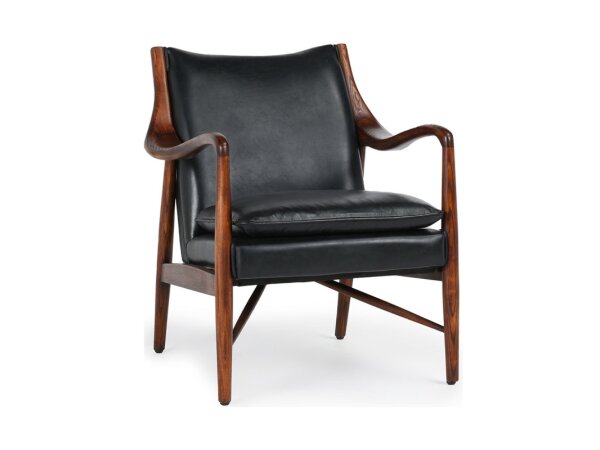 The Ken Club Chair exudes bold sophistication with its jet-black top-grain leather upholstery and sleek iron base. Designed for both