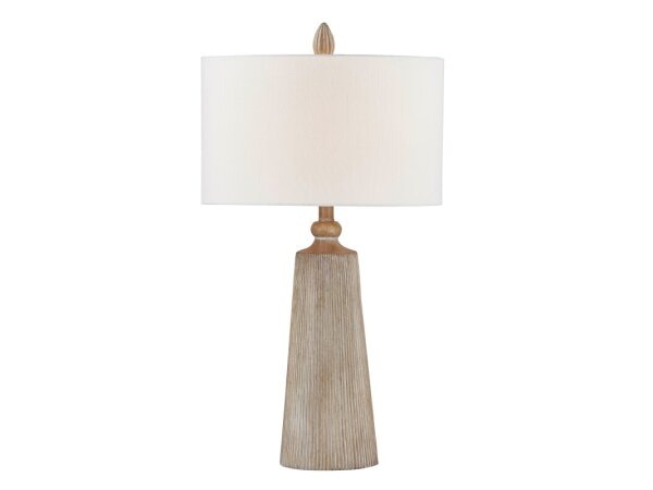 Nadine Table Lamp – Beautifully designed with its carved-out pieces, standing 35” tall, and features a distressed light grey wash.