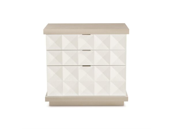 Using unique materials, distinctive finishes and an appealing 3-D motif, this nightstand creates a memorable modern look.