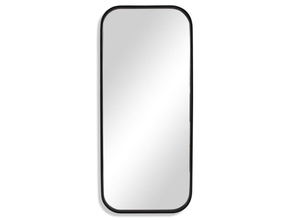 This oversized mirror showcases simple, clean lines with a thick iron frame finished in a matte black. The piece has