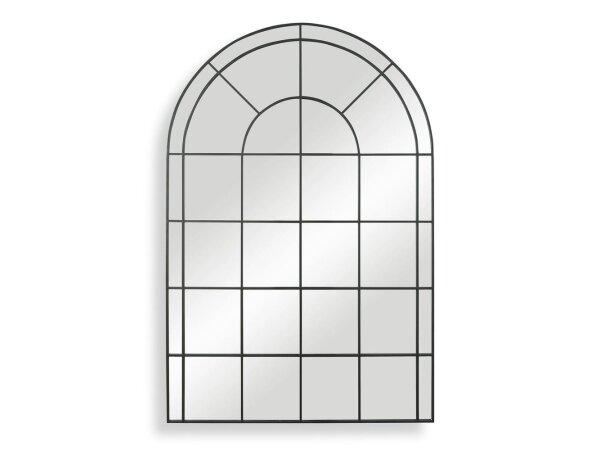 A transitional take on a classic design, this arch mirror features a delicate iron frame finished in satin black.
