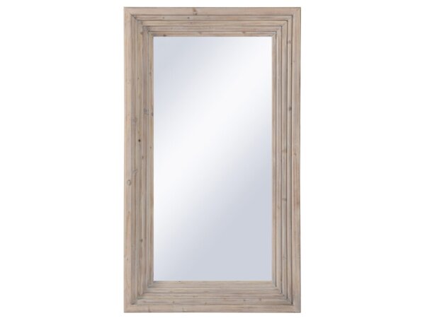The Crestview Collection Contouring Mirror is light grey wood with dark grey framing around the border of both the rectangular