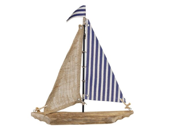 Natural Wood With Blue And White Striped Sail