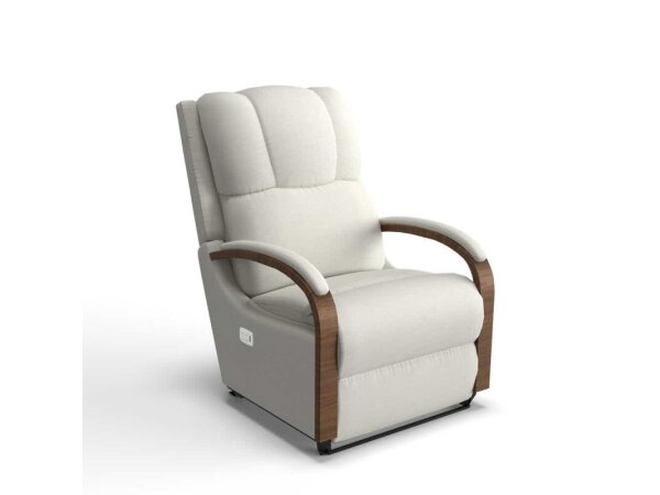 A customizable round ottoman with webbed seating for use as a footrest, to hold a tray, or as extra seating. Choose a smooth or tufted fabric top with tapered walnut-finish legs.