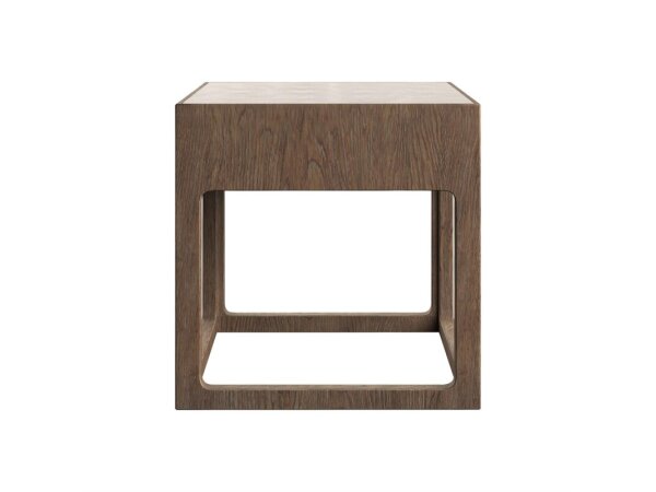 Metal, rope, faux stone and wood form a stunning organic nightstand design.