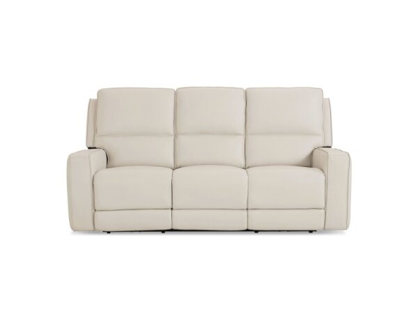 Modern leather power reclining sofa with dual zero-gravity end seats and power headrests. Integrated USB ports keep devices charged; top-grain leather adds a refined, durable finish.