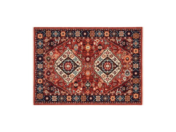 Patterned area rug in a wool/nylon blend, made in Egypt; rug pad recommended and not for outdoor use.