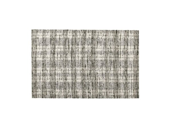 Handwoven wool-cotton rug, hand-carded for a lofty, pillowy texture with classic stripes and a subtly distressed plaid. Indoor rug; rug pad recommended.