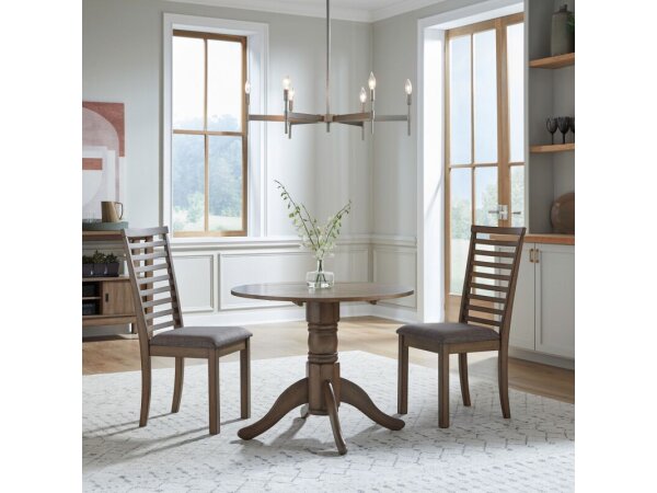 This slat back counter chair features a comfortable padded seat with Grey Linen upholstery. It is designed with square tapered legs and a footrest for added comfort.