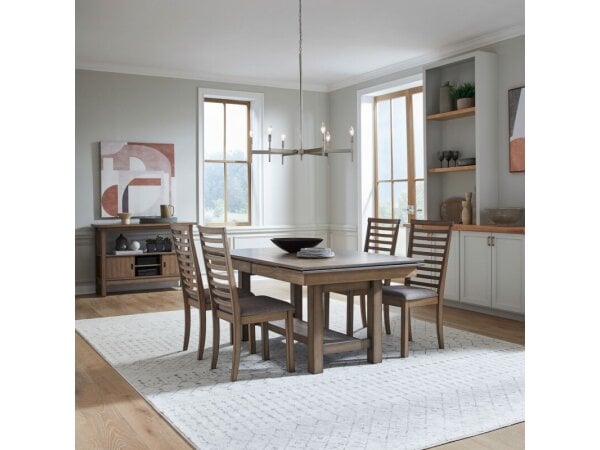 This ladder back counter chair features a comfortable, padded seat with Grey Linen upholstery. It is designed with square tapered legs and a footrest for added support.