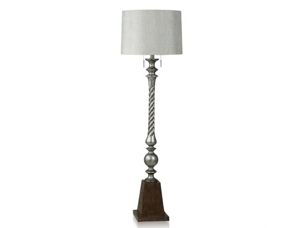 India Silver And Brown Pedestal Floor Lamp Painted Silver Swirl With Double Pull Chain 60w
