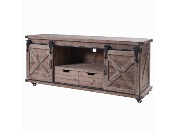 Bronze Crate Distressed Crate Style Tv Console With Storage And Barn Door Hardware