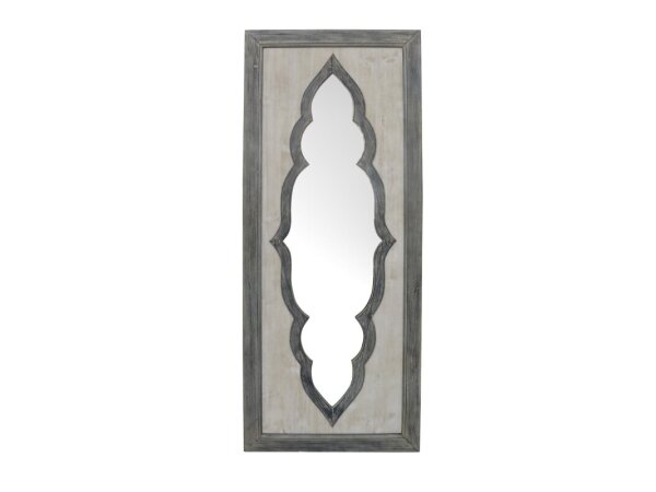 The Crestview Collection Contouring Mirror is light grey wood with dark grey framing around the border of both the rectangular