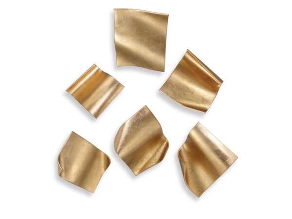 Featuring elegant curves reminiscent of pages blowing through the wind, these iron wall pieces are finished in bright gold leaf