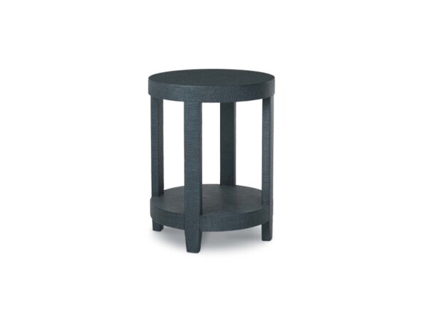 Raffia‑wrapped end/bedside table with a satin brass ring pull and neo‑traditional style. Includes a top drawer and leveling feet for practical bedside or living‑room storage.